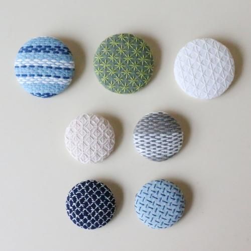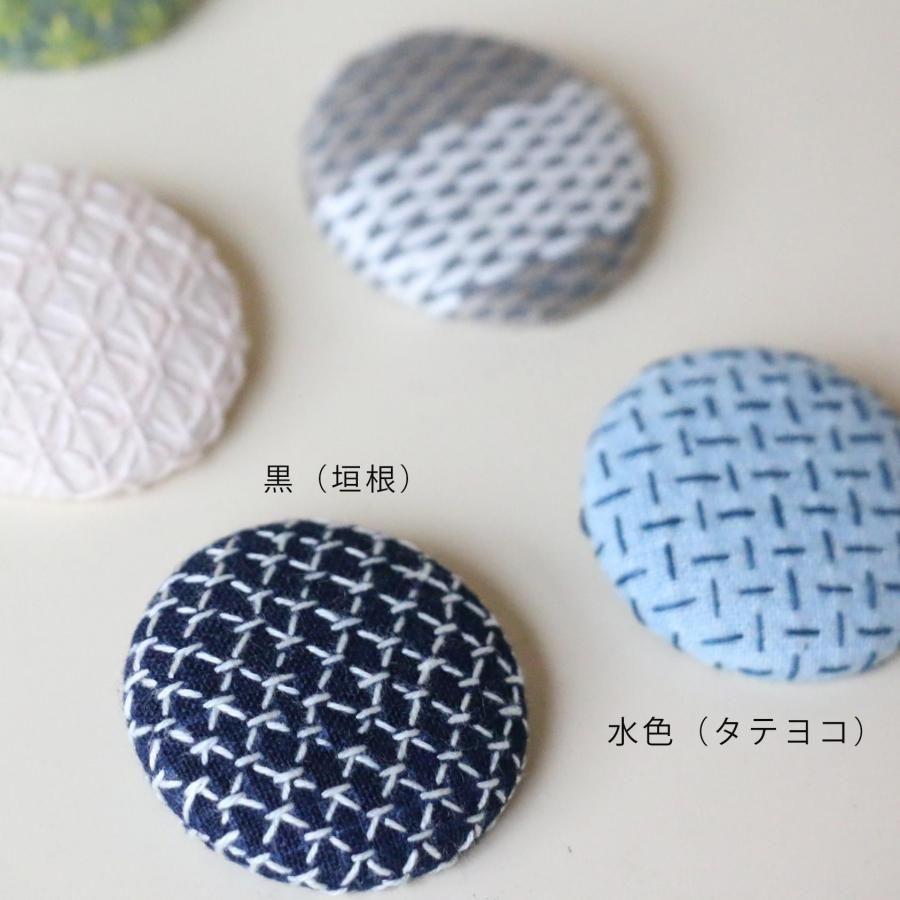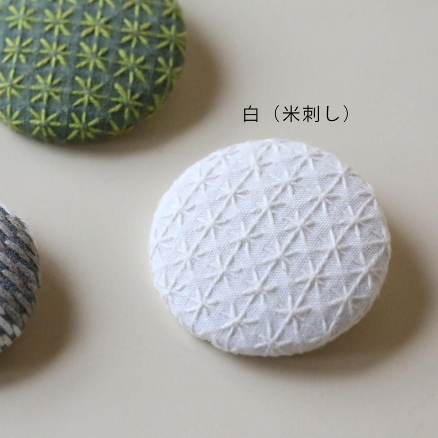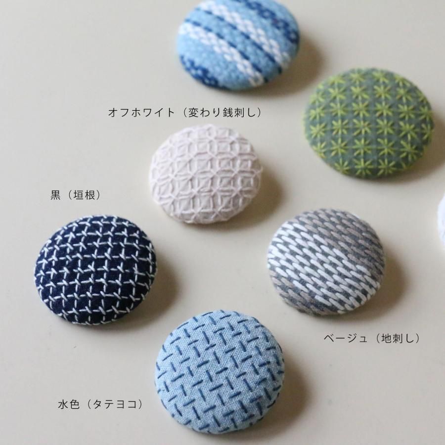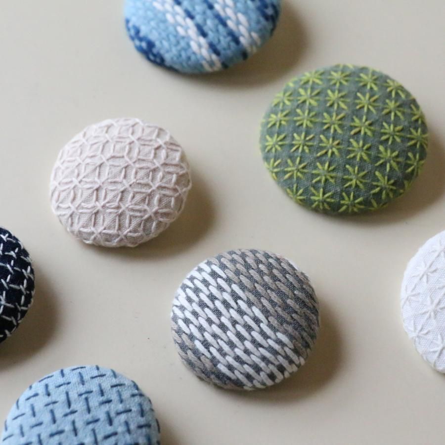 刺し子作家 小松柾子さんによる「刺し子のブローチ」。