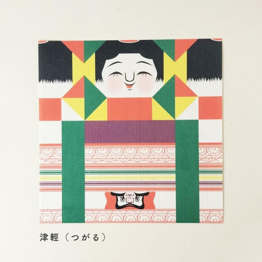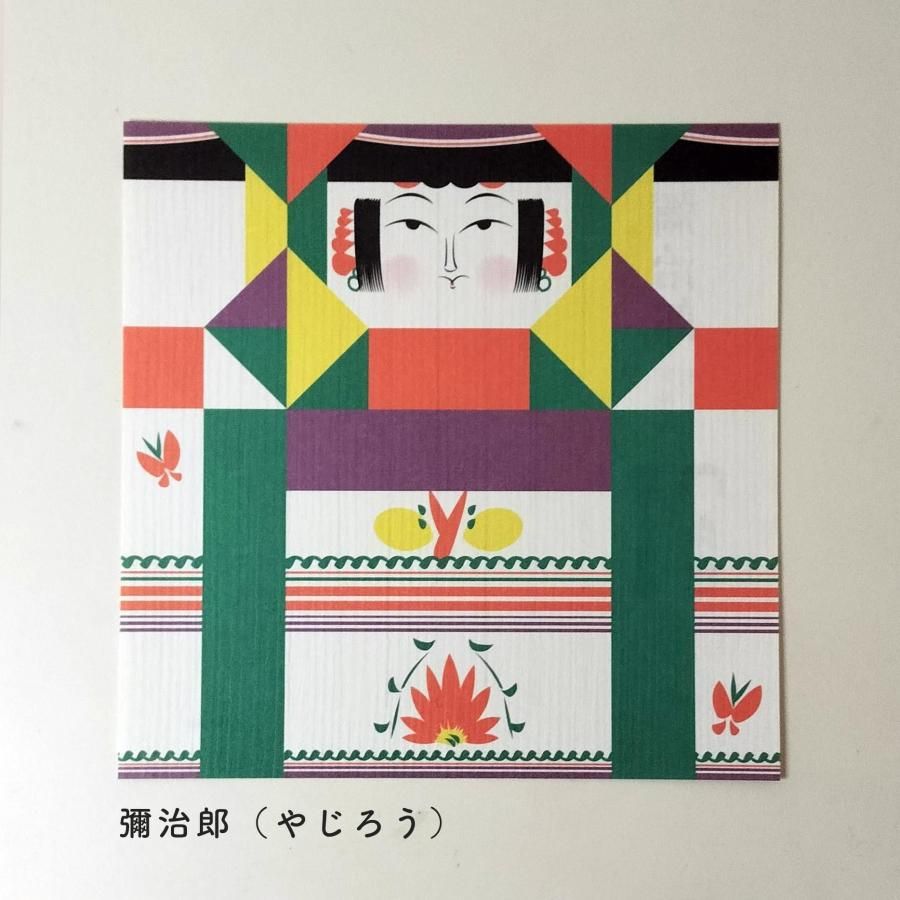 津輕(つがる)、彌治郎(やじろう)、土湯(つちゆ)、遠刈田(とおがった)、作竝(さくなみ)の5つのこけしが2枚ずつ入ってます。